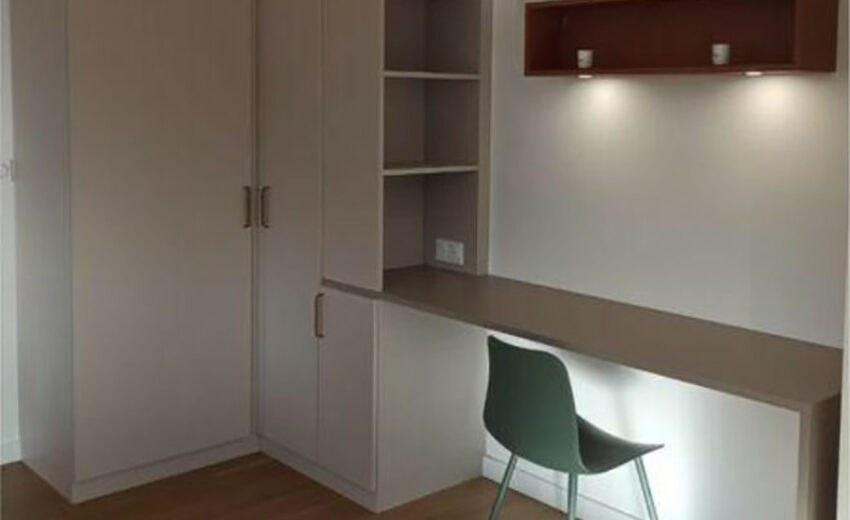 Vos surfaces sont limitées et vous souhaitez créer un espace de travail dans votre appartement ? Avec l’aménagement d’un bureau sur mesure, tout est possible. Vous pourrez opter pour une installation sous-combles et utiliser des espaces perdus qui ne servaient à rien. Ainsi, placé sous pentes ou sous un escalier, l’aménagement de votre espace bureau vous évite de monopoliser une pièce entière tout en vous permettant de bénéficier d’un endroit confortable pour travailler sereinement. Gagnez en praticité en ajoutant à votre bureau des étagères et tiroirs selon vos besoins. Dans un studio, optez pour le lit-bureau escamotable pour économiser davantage d’espace. Vous pouvez aussi choisir l’aménagement d’un bureau dans une chambre d’enfant grâce à nos accessoires et finitions dédiés.