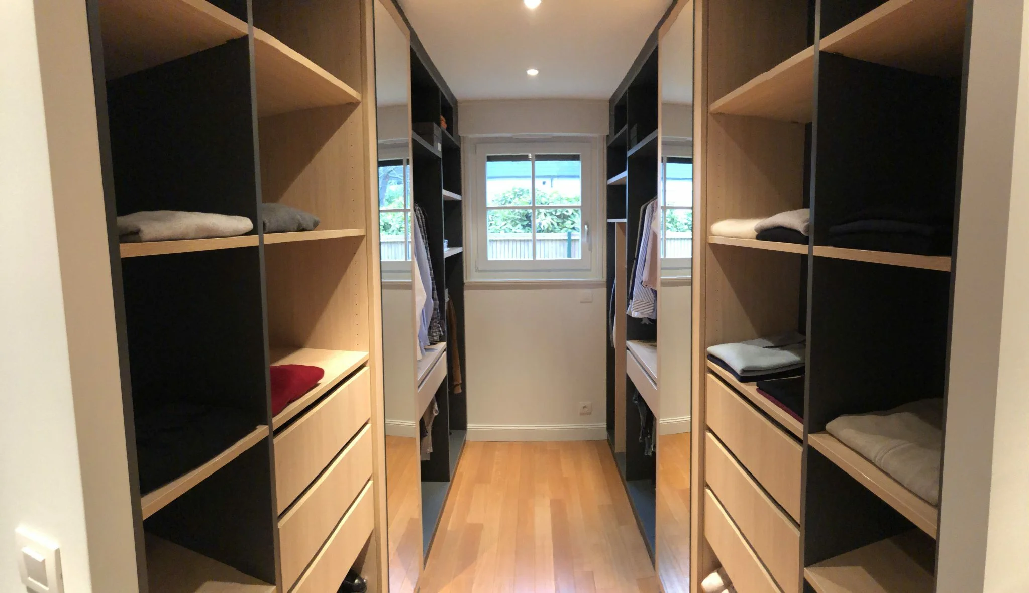 Notre vocation est de concevoir (nos chargés de clientèle sont exclusivement des architectes d’intérieur diplômés et spécialisés dans le mobilier d’agencement), fabriquer (partenariat avec 3 sites de production en France) et installer (nos équipes de pose) tout type d’agencements, dressings, bibliothèques, agencements sous rampants…