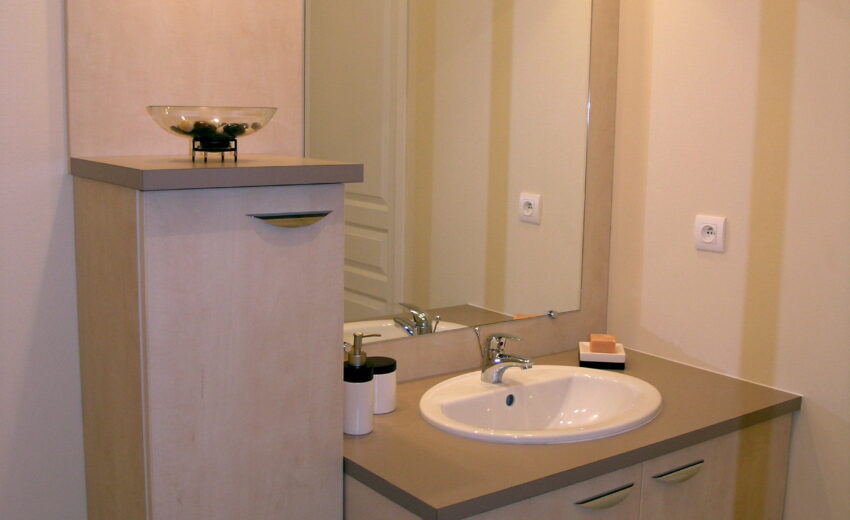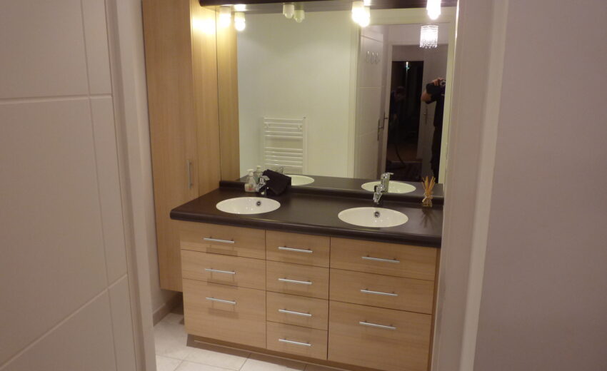 Qui n’a pas eu de mal à trouver un meuble de salle de bains adapté à ses attentes ? Souvent, le modèle plaît, mais les dimensions ne vont pas, ou il manque un accessoire. Parfois, tout va bien, mais c’est horriblement cher. En tant que menuisiers agenceurs, et grâce à nos architectes d’intérieurs, nous saurons concevoir, personnaliser, fabriquer et installer vos meubles de salle de bain sur mesure. Et nous prendrons en compte les contraintes techniques (tuyaux, évacuations, …) pour un aménagement de meuble de salle de bain 100% personnalisé.
