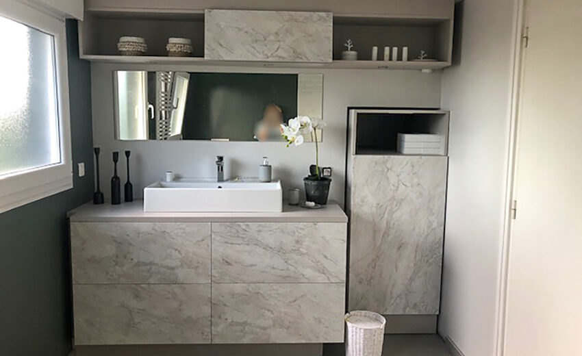 Vous pourrez ainsi intégrer votre machine à laver, ranger vos affaires de beauté ou encore coffrer votre baignoire et gagner en praticité et en décoration, en vous appuyant sur le savoir-faire de nos agenceurs et menuisiers.