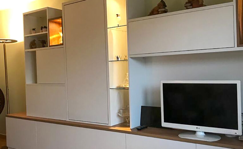 Avec nos solutions d’agencement de meuble tv, découvrez nos méthodes pour dissimuler habilement votre poste de télévision, telles que les portes à coulisses verticales, les blocs d’étagères coulissantes ou les élévateurs électriques.