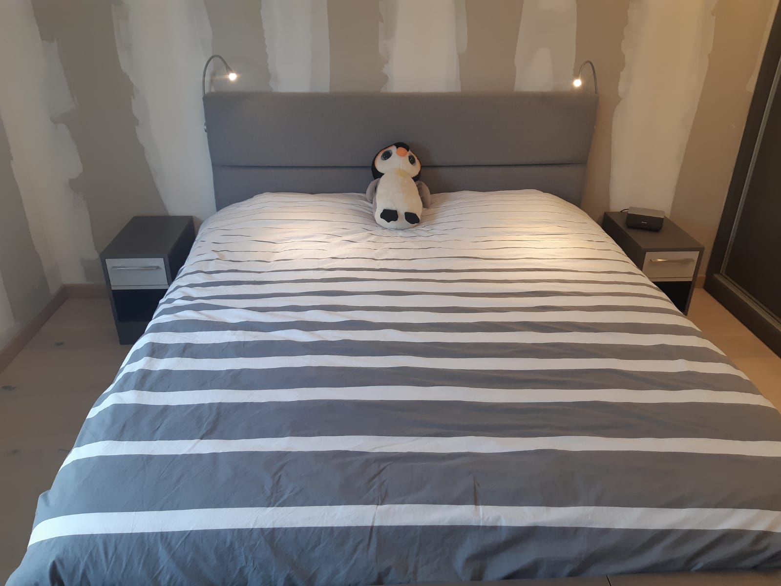 Nous y avons également installé un bout de lit, esprit coffre, une commode avec essentiellement des tiroirs et des chevets de chaque côté du lit. Nous avons fait en sorte que les espaces de rangements soient nombreux afin que nos clients aient de la place. Ainsi, ces derniers ont la possibilité de structurer le rangement.