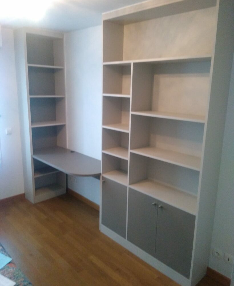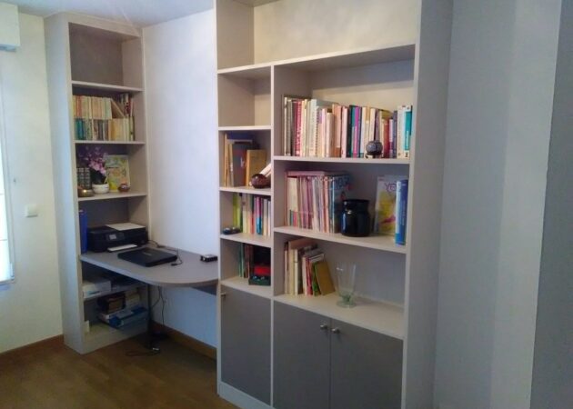 Nous avons réalisé l’aménagement de ce bureau avec une partie bibliothèque dans le but d’offrir le meilleur confort possible à nos clients. Ainsi, on peut retrouver des espaces ouverts dans lesquelles ils pourront installer de la décoration. Le meuble possède un design unique à l’image de nos clients. Ensuite, nous avons intégré des espaces fermés qui servent à accueillir du rangement. Le côté pratique était également très important pour ce projet.
