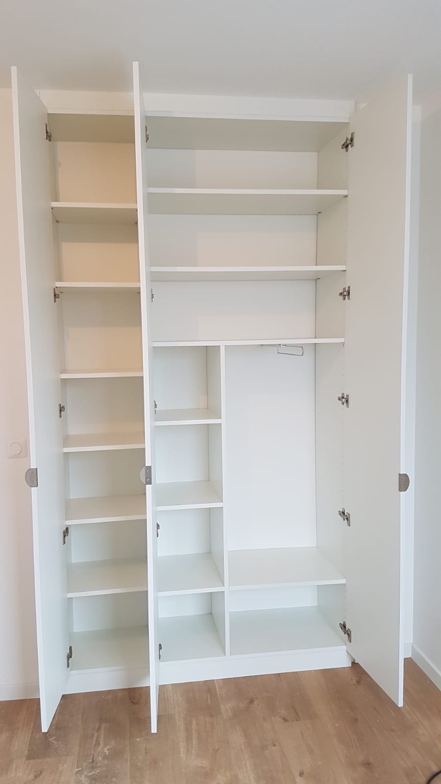 Nous avons conçu un aménagement d’un placard dans un renfoncement peu profond. Le but premier de ce projet était de réaliser un gain de confort pour nos clients. Ainsi, nous avons décidé d’utiliser le sur mesure. En effet, ce type de procédé permet d’utiliser de la meilleure manière possible l’espace disponible dans une pièce. Ainsi, cela nous a permis d’optimiser l’espace qui paraissait difficilement exploitable.