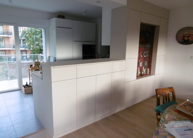 Pour ce projet d’aménagement d’une arrière-cuisine, nous avions deux principaux objectifs. Nous voulions obtenir un design unique pour que nos clients se sentent bien dans cette pièce de vie. Ensuite, nous souhaitions pouvoir libérer de l’espace de rangement pour nos clients. Enfin, l’aménagement d’une arrière-cuisine répond à l’ensemble des critères fixés initialement par nos clients. Le résultat constitue un réel gain de confort pour ces derniers de par son design et son côté pratique.