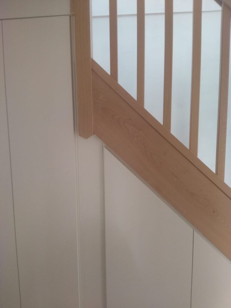 Nous avons créé un aménagement sous escalier à Wambrechies. Ce projet a été réalisé dans le but d’optimiser l’espace perdu dessous. Généralement, ces meubles servent de vestiaire, range chaussure, sacs etc… À noter que ce sous escalier a été réalisé entièrement sur mesure. En effet, s’agissant d’un angle très important, le sur mesure est un réel procédé qui permet d’optimiser de la meilleure des façons l’espace disponible dans la pièce. Ainsi on obtient un résultat précis. Afin de satisfaire pleinement nos clients, nous avons choisi de travailler sur deux objectifs principaux.