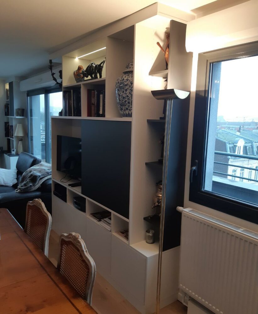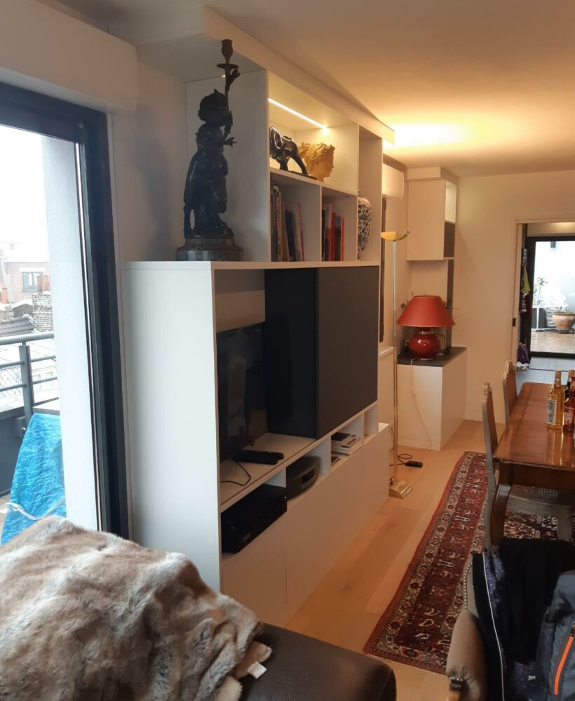 Nous avons réalisé l’aménagement sur mesure d’une pièce salon/séjour d’un de nos anciens clients pour son appartement à Lille.