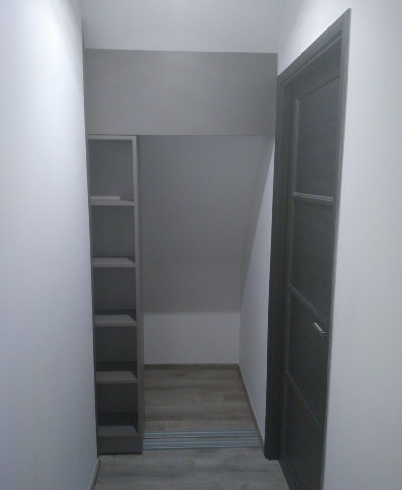 Pour mener à bien ce projet, nous avons choisi de travailler sur deux axes. Ces derniers nous paraissaient fondamentaux pour satisfaire pleinement nos clients. Premièrement, nous avons développé le côté pratique du meuble. Nous avons intégré des zones de stockages ouvertes. Ces dernières sont destinées à accueillir du rangement mais aussi de la décoration. Deuxièmement, nous avons fait en sorte que le design de la bibliothèque coulissante sur mesure soit complémentaire à celui de la pièce.