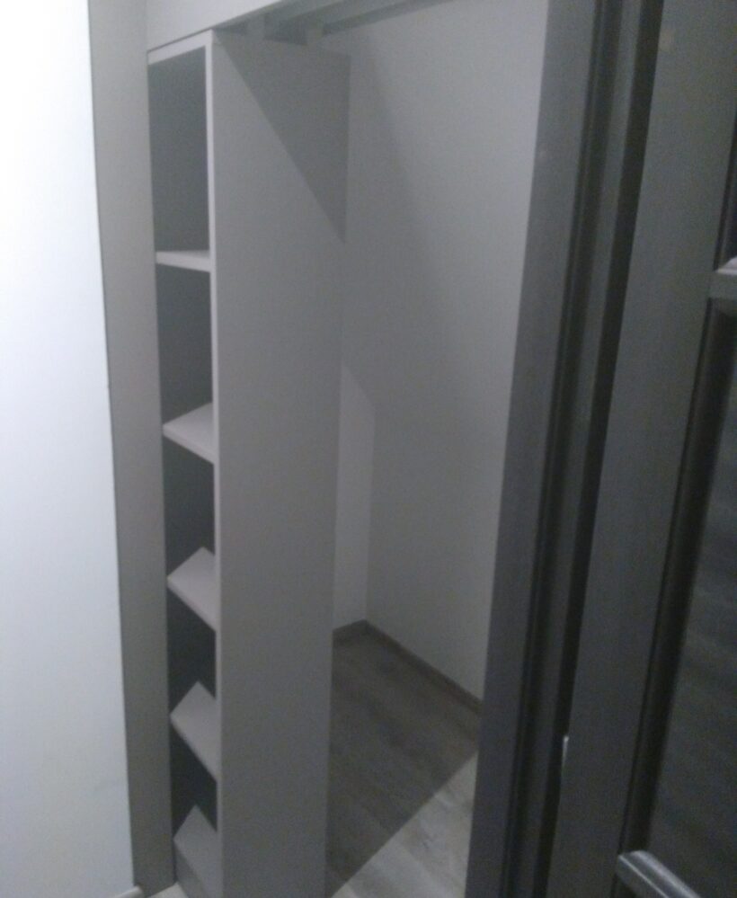 Conception sur mesure d’une bibliothèque coulissante faisant également office de séparation de pièce .