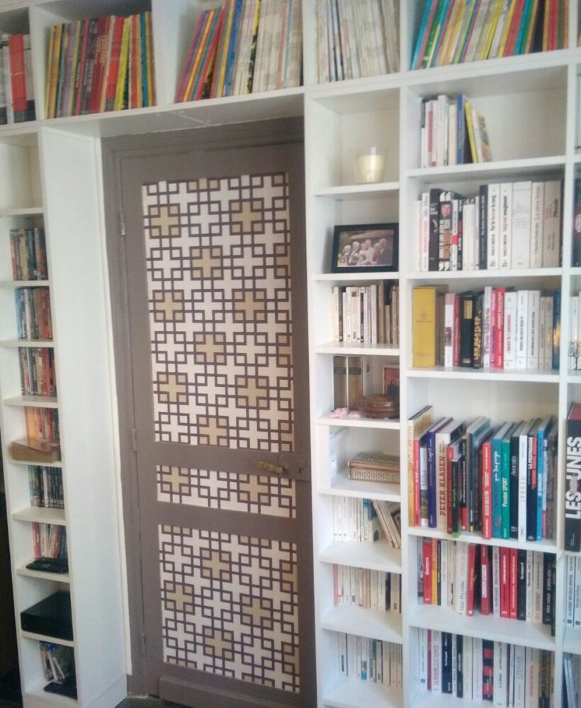 Nous avons réalisé la conception d’une bibliothèque sur mesure autour d’une porte. Une ouverture dans un mur marque une rupture qui est parfois difficile à aménager. Ainsi, installer une bibliothèque constitue l’une des solutions les plus esthétiques et pratiques.En effet , sa modularité lui permet de s’adapter à toutes les configurations et à tous les styles.
