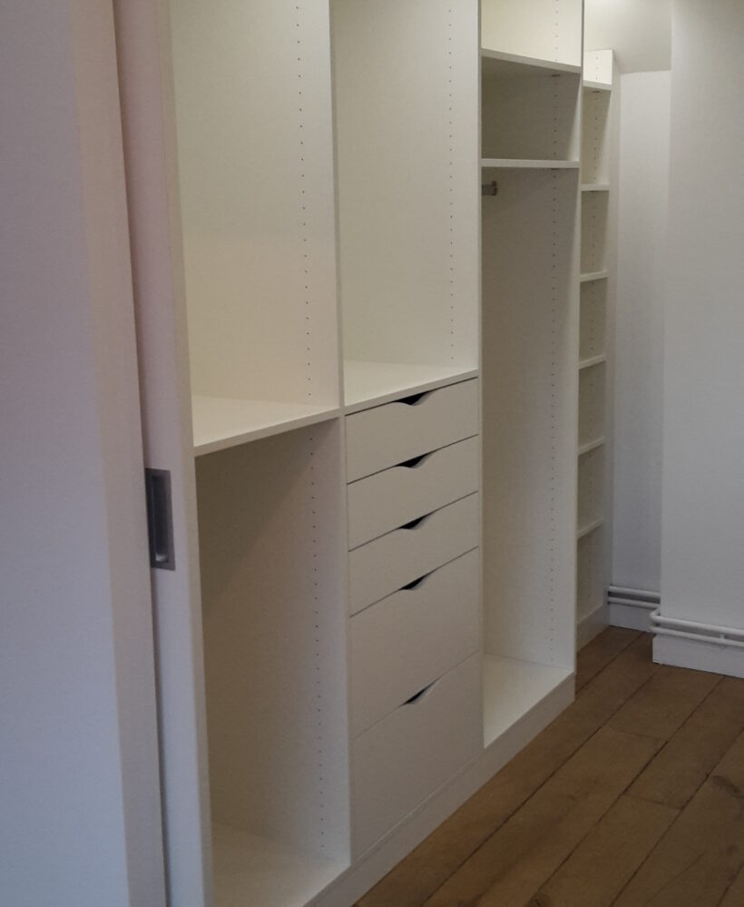 Enfin, ce dressing ouvert avec séparation de pièce constitue un véritable gain de place pour nos clients.