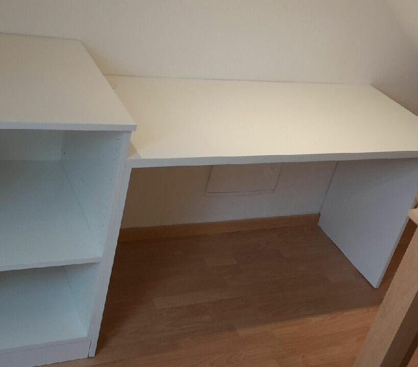 Aménagement sur mesure d’un comble entier avec un dressing sous pente fermé par des portes battantes avec une partie bureau à Tourcoing .