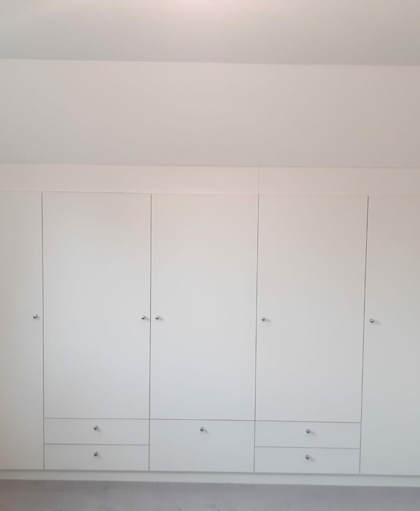 Nous avons réalisé un dressing sous mansarde dans une chambre. Vous pouvez embellir votre pièce en redonnant une fonction à ces espaces mansardés avec un meuble sur mesure. Par exemple : une armoire de rangement, un dressing, ou de simple étagère. Les fonctions sont multiples.