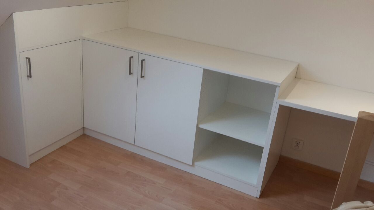 Il est réalisé en mélaminé chêne Paruma. En effet, type impression bois clair de manière à trancher visiblement avec le plancher existant de la chambre .