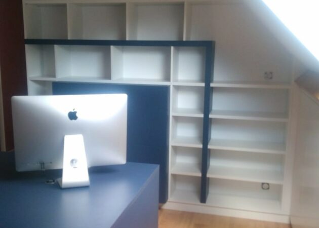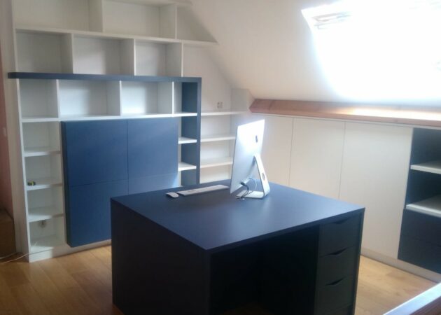 Espace de travail sous mansarde pour 2 personnes en vis-à-vis, à Boescheppe, dans les Flandres.