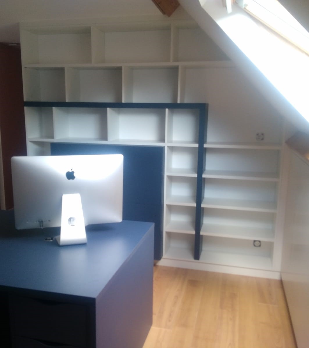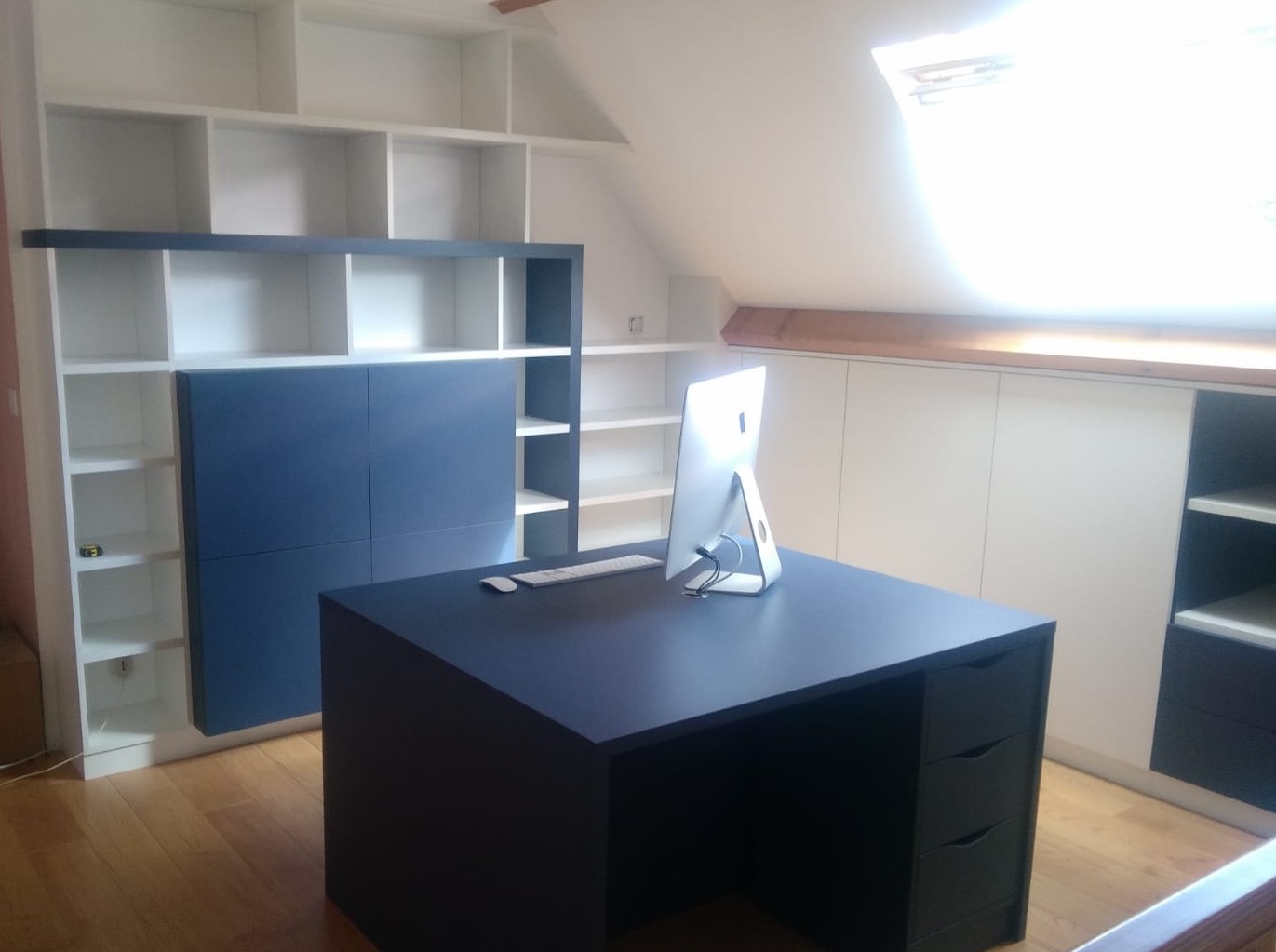 Espace de travail sous mansarde pour 2 personnes en vis-à-vis, à Boescheppe, dans les Flandres.