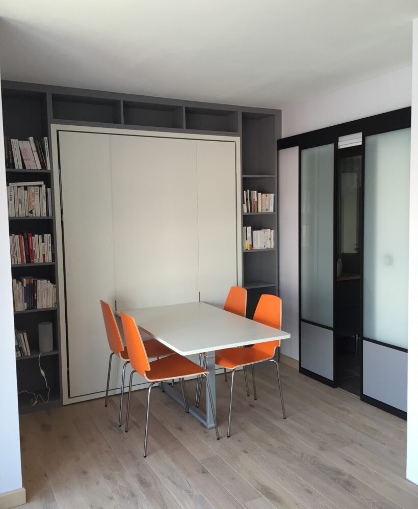 Enfin, la réalisation de ce lit escamotable et table répond à l’ensemble des critères fixés par nos clients initialement. Le résultat représente un gain de place considérable pour ces derniers.