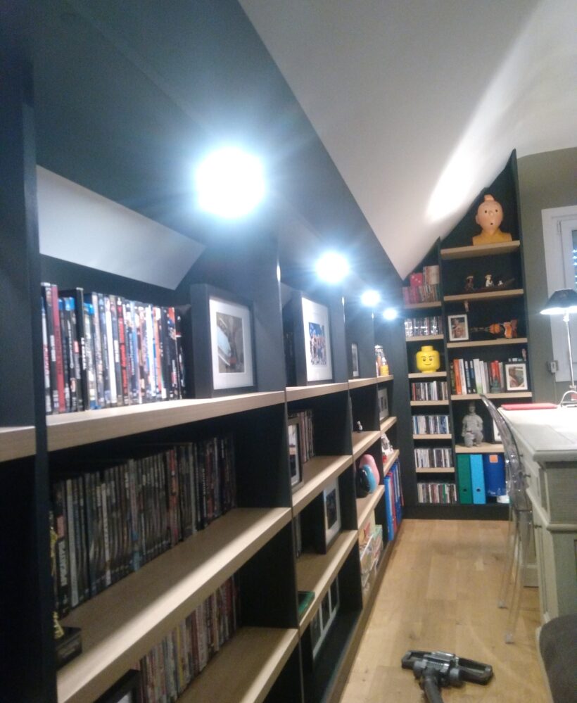 Enfin, la réalisation de ce meuble bibliothèque noir d’angle répond à l’ensemble des critères fixés par notre client initialement.
