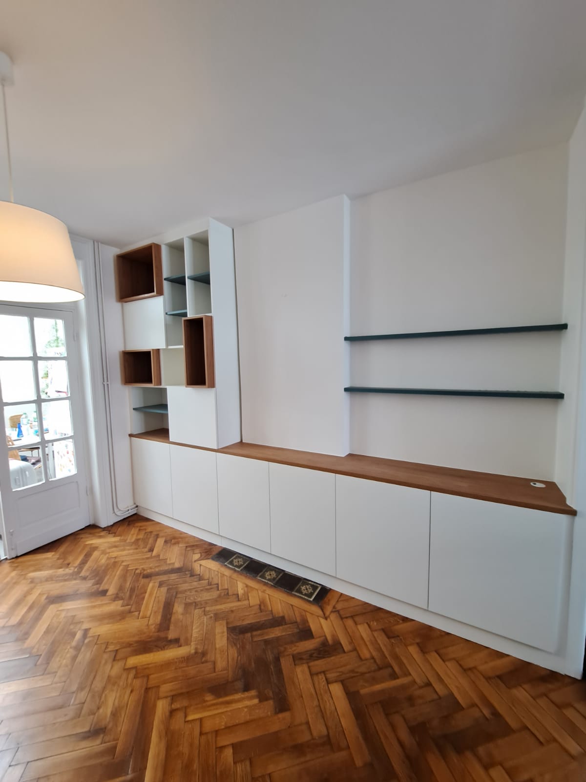 Nous avons réalisé un meuble buffet sur mesure. Pour ce projet situé à Lille, nous avons cherché à offrir le meilleur confort possible pour nos clients. Nous avons pris en compte l’ensemble de leurs souhaits afin de pouvoir proposer un résultat final à la hauteur de leurs attentes. Nous avons donc travaillé sur deux axes principaux. Premièrement, le côté pratique du meuble. En effet, ce dernier doit pouvoir représenter un réel gain de confort. Deuxièmement, nous avons travaillé le côté esthétique pour que le résultat s’intègre parfaitement dans la pièce. Pour ce projet, nous avons utilisé la fabrication sur mesure.