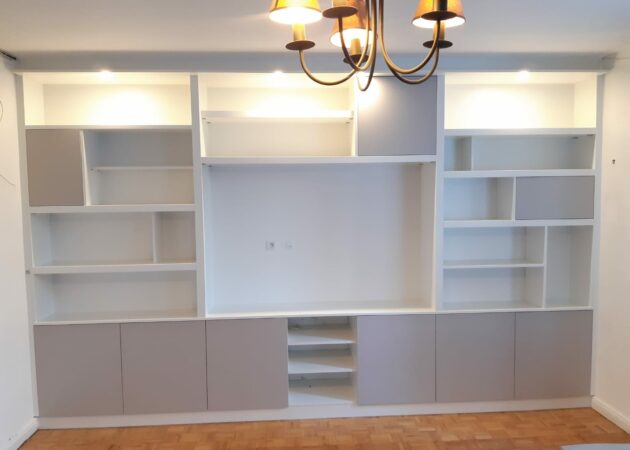 Pour ce projet nous avons décidé d’utiliser le sur mesure. Ce procédé permet que le meuble s’intègre parfaitement dans la pièce.