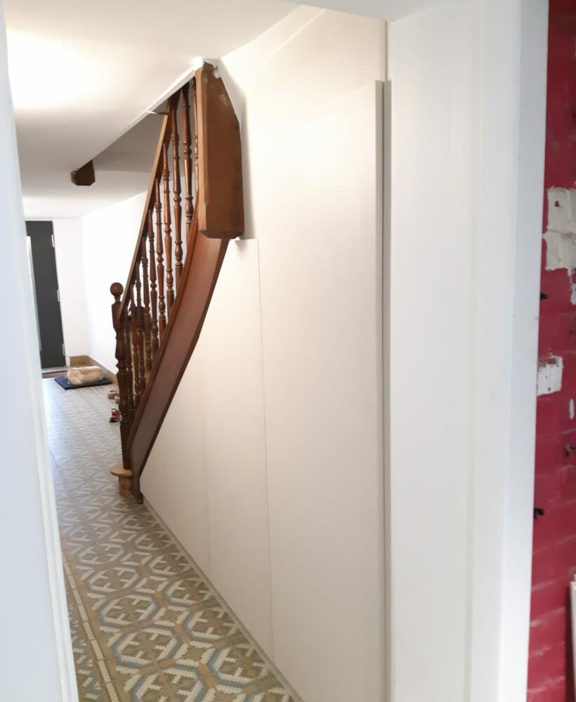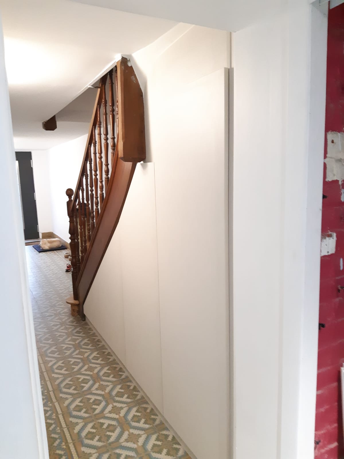 Pour conclure, cet aménagement sous escalier astucieux à Lambersart répond à l’ensemble des critères fixés par nos clients. Il constitue un réel gain de place pour ces derniers.