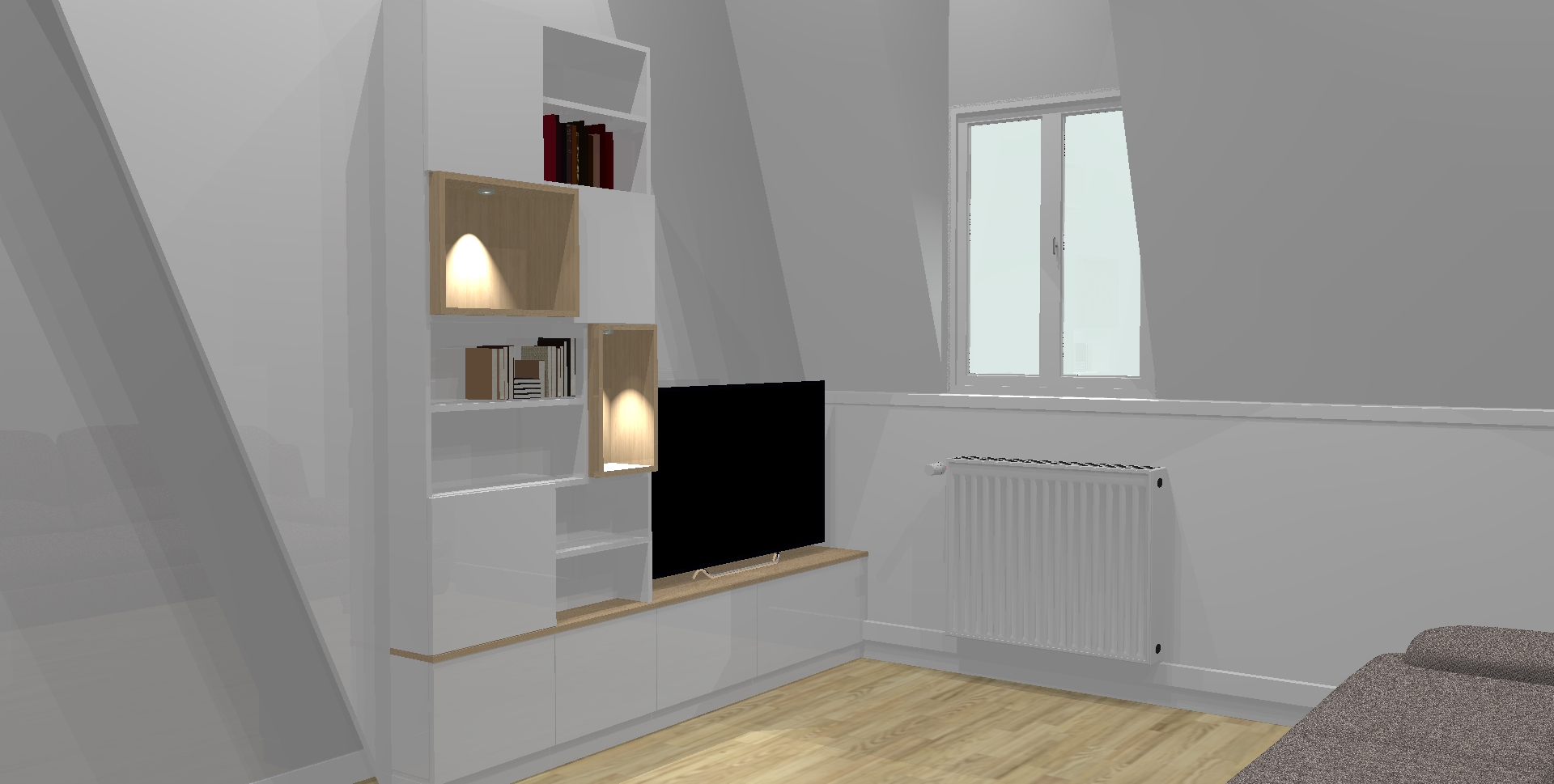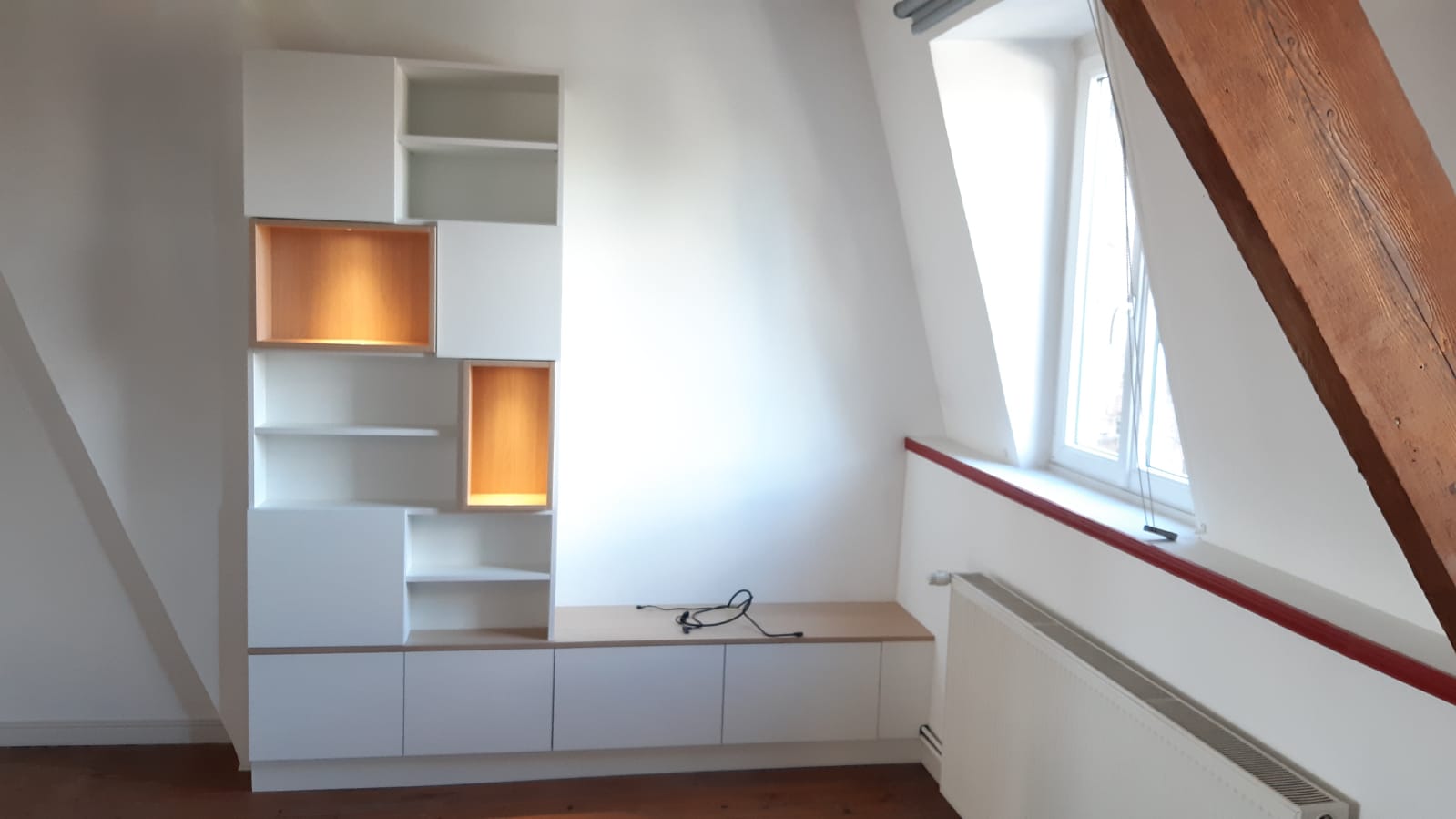 Enfin, la réalisation de ce meuble Tv à Tourcoing constitue un réel gain de confort pour nos clients de par son côté pratique et son design original. Ce projet ajoute beaucoup de charme à la pièce.