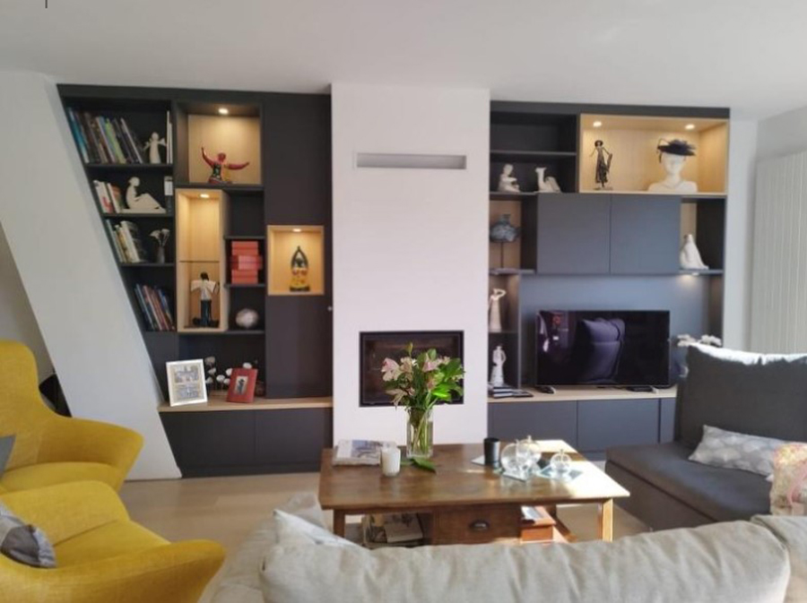 Espace de vie personnalisé avec meubles TV et bibliothèques sur mesure à Lille