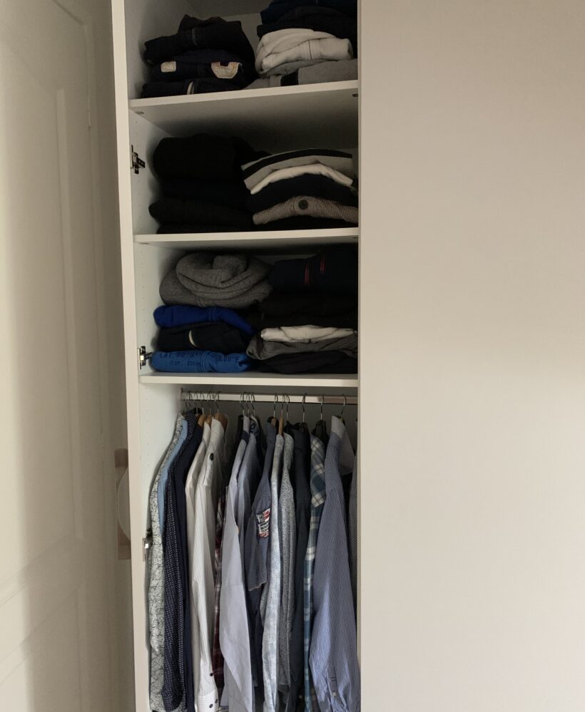 Dans un premier temps, nous avons travaillé sur le côté esthétique du placard. En effet, on peut ainsi voir que ce dernier possède une niche qui a pour fonction d’alléger la structure. Elle permet ainsi de déposer une boite à montre, à bijoux ou même une lampe… De plus, les couleurs choisies sont originales et donnent une réelle harmonie à la pièce.