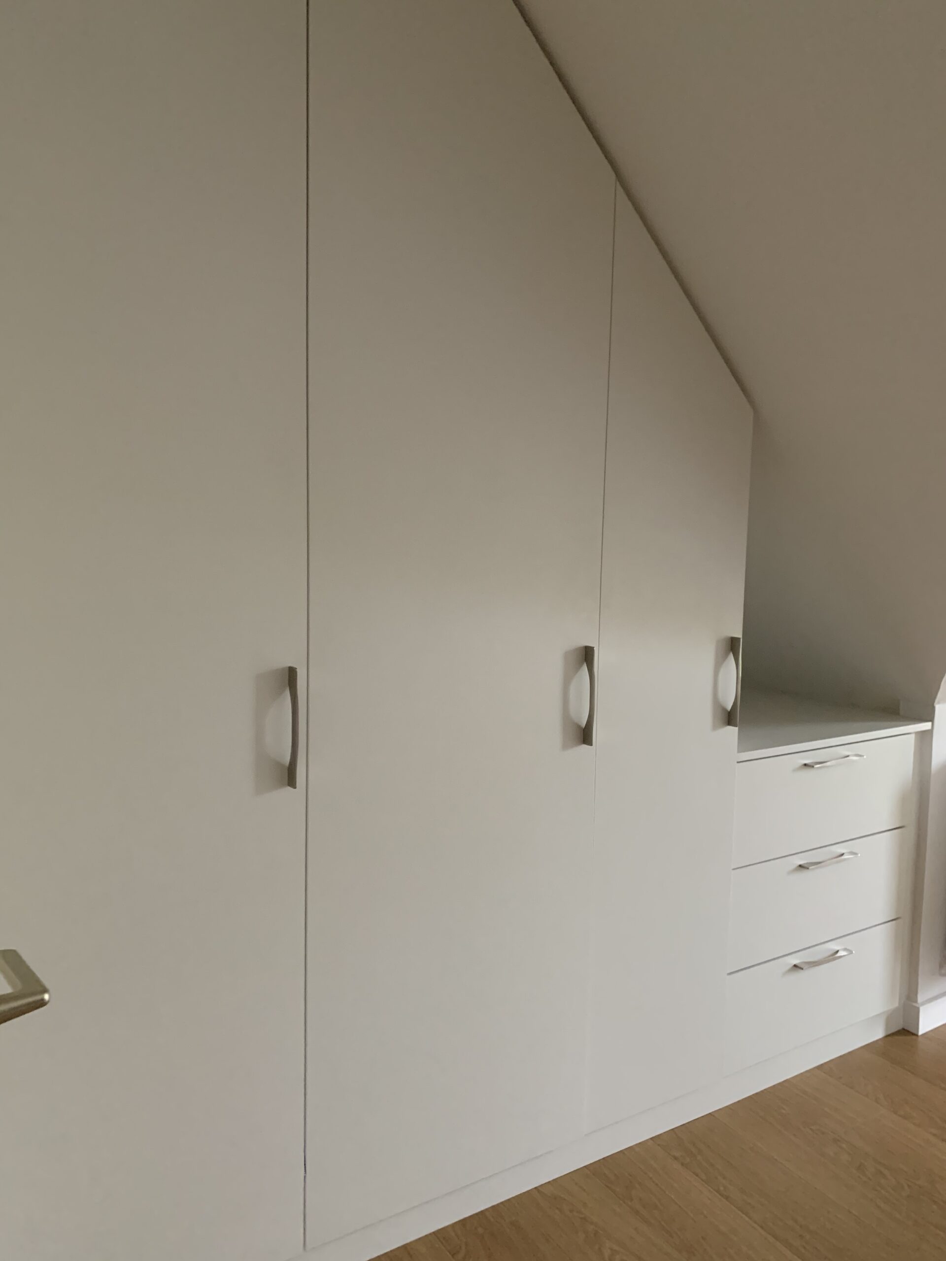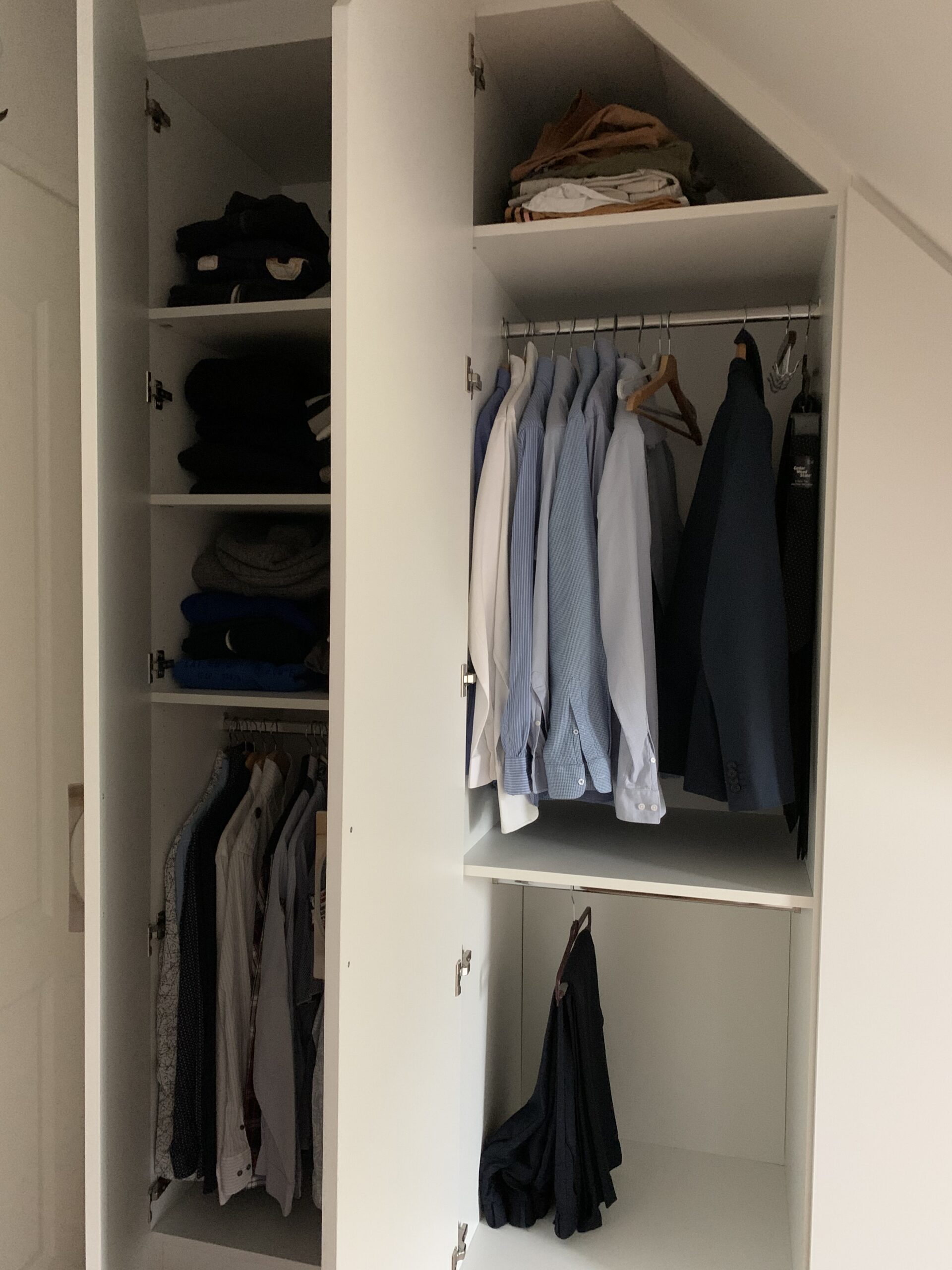 Aménagement d’un placard sous mansarde avec niche décorative. Afin de mener à bien ce projet, nous avons écouté attentivement les attentes de nos clients dans le but de pouvoir leur proposer un résultat à la hauteur de leurs attentes. À noter que ce placard a été réalisé sur mesure afin d’optimiser au mieux l’espace disponible dans la pièce. Nous avons donc choisi de travailler sur deux objectifs principaux.