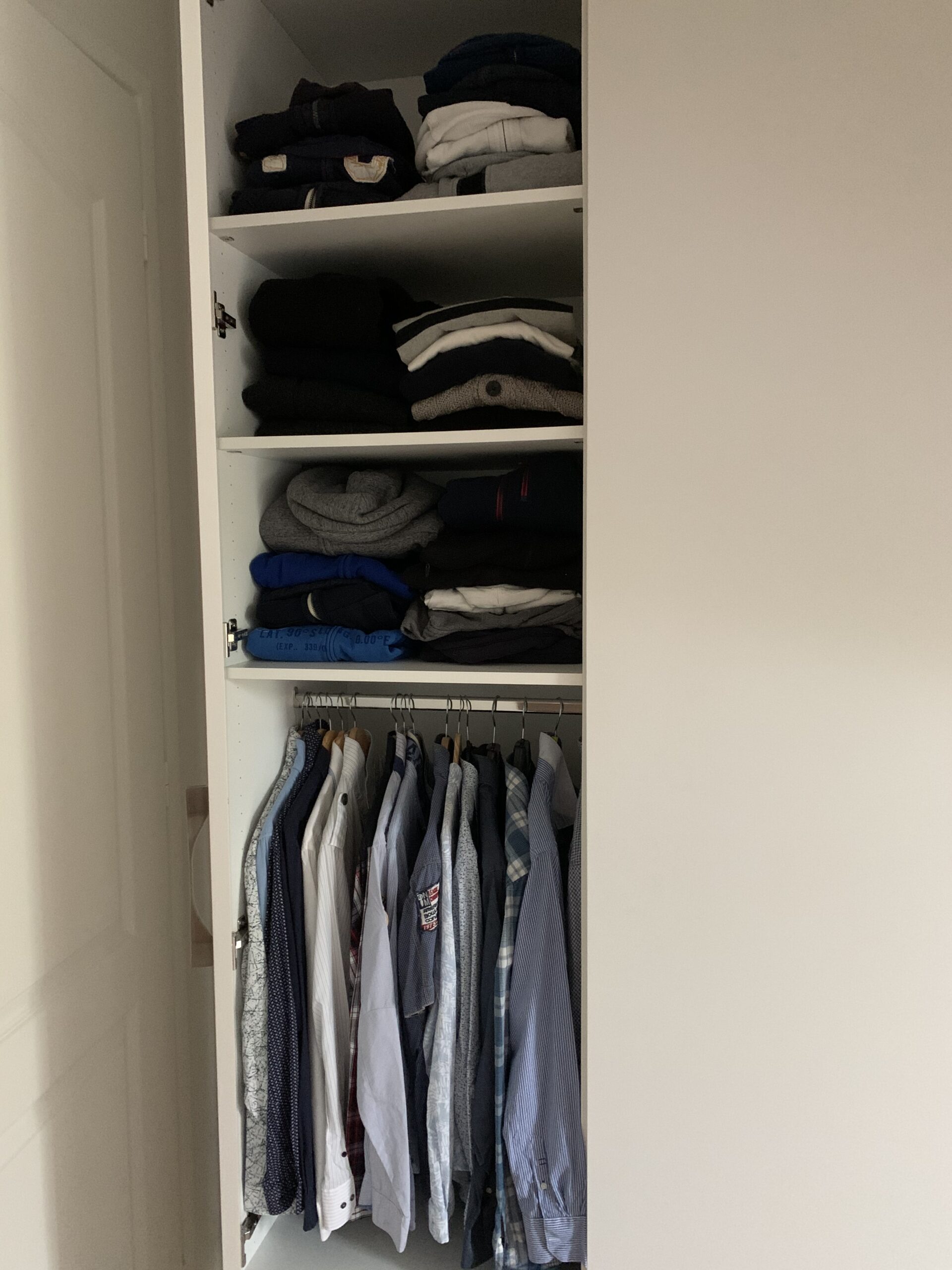 Dans un premier temps, nous avons travaillé sur le côté esthétique du placard. En effet, on peut ainsi voir que ce dernier possède une niche qui a pour fonction d’alléger la structure. Elle permet ainsi de déposer une boite à montre, à bijoux ou même une lampe… De plus, les couleurs choisies sont originales et donnent une réelle harmonie à la pièce.