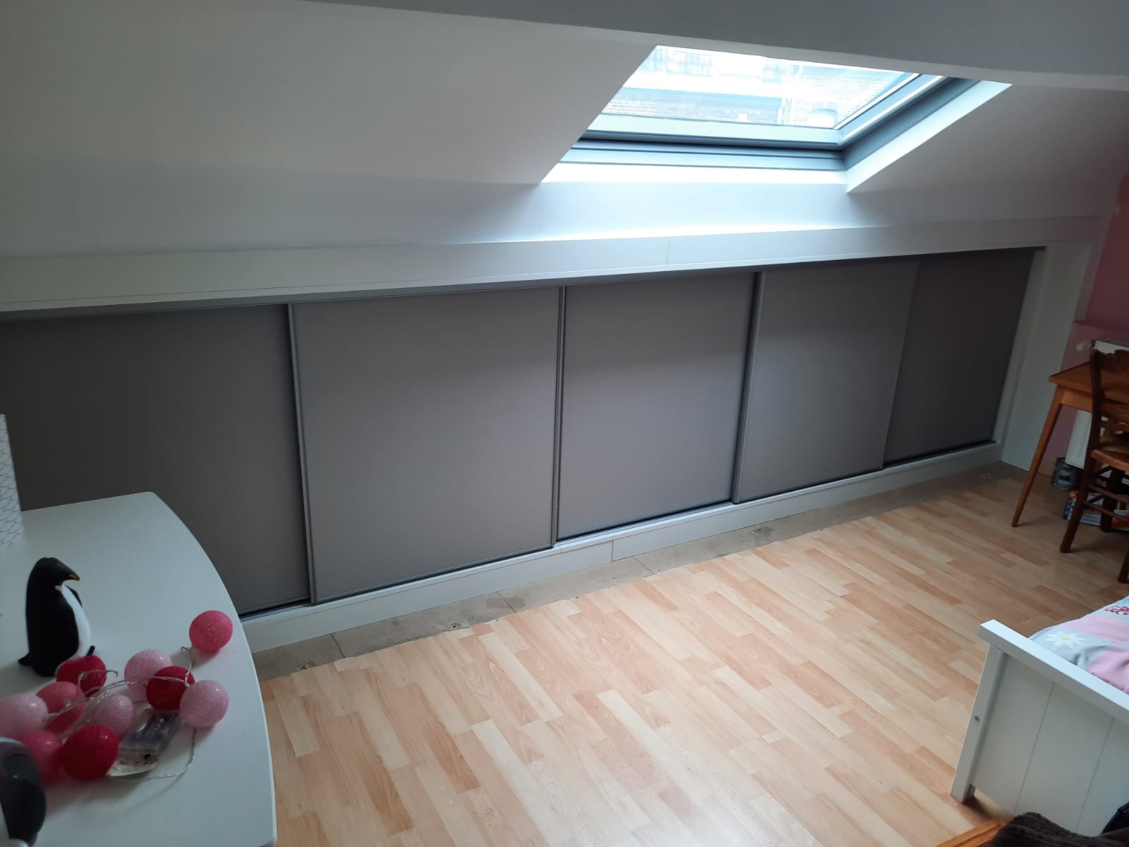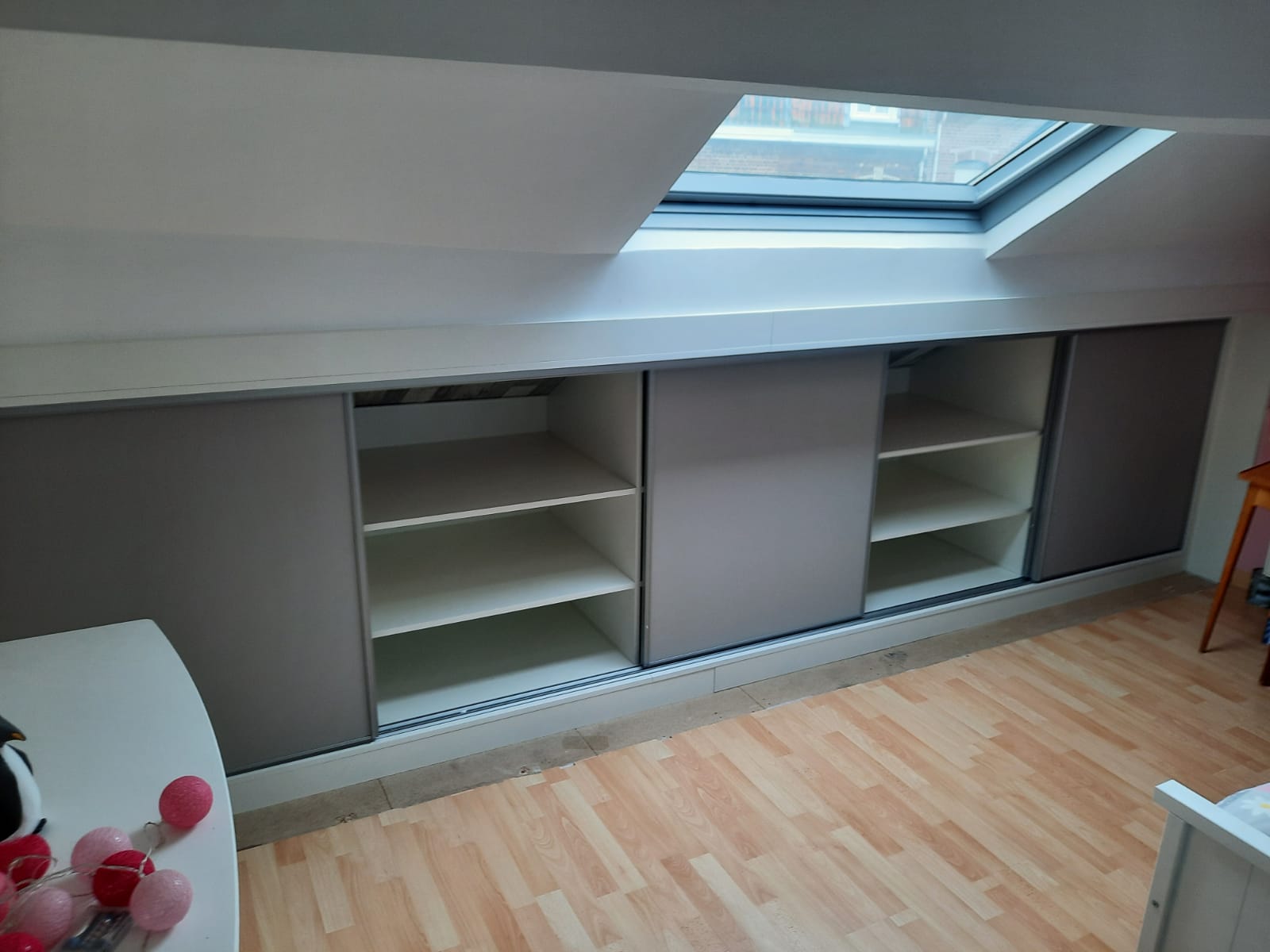 Nous avons réalisé un placard sous pente à Linselles, installé dans un renfoncement d’une sous pente.