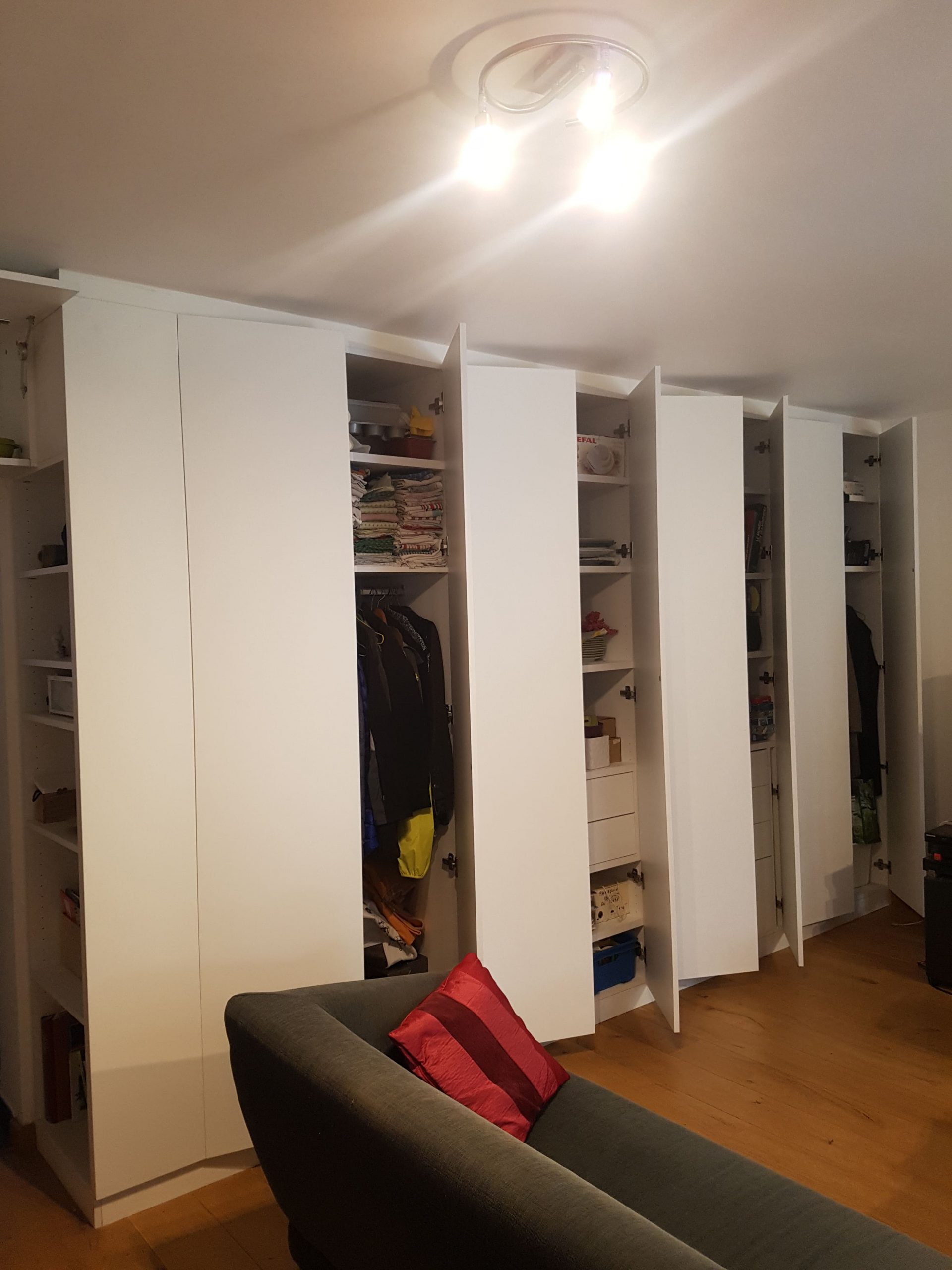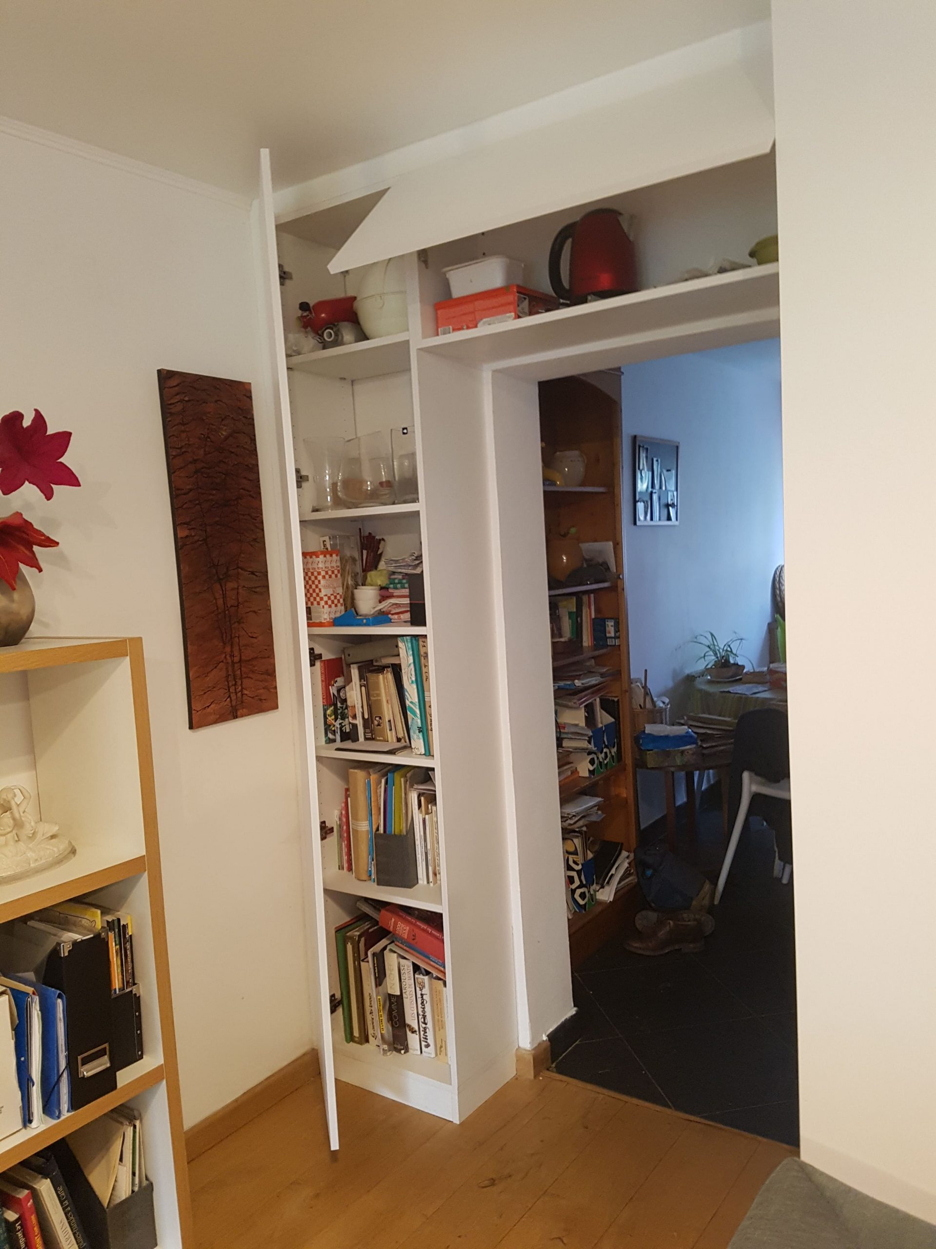 La seconde partie du projet, se situe sur un autre mur. Malgré la plus petite superficie, le placard peut accueillir beaucoup de rangements puisqu’il est profond.