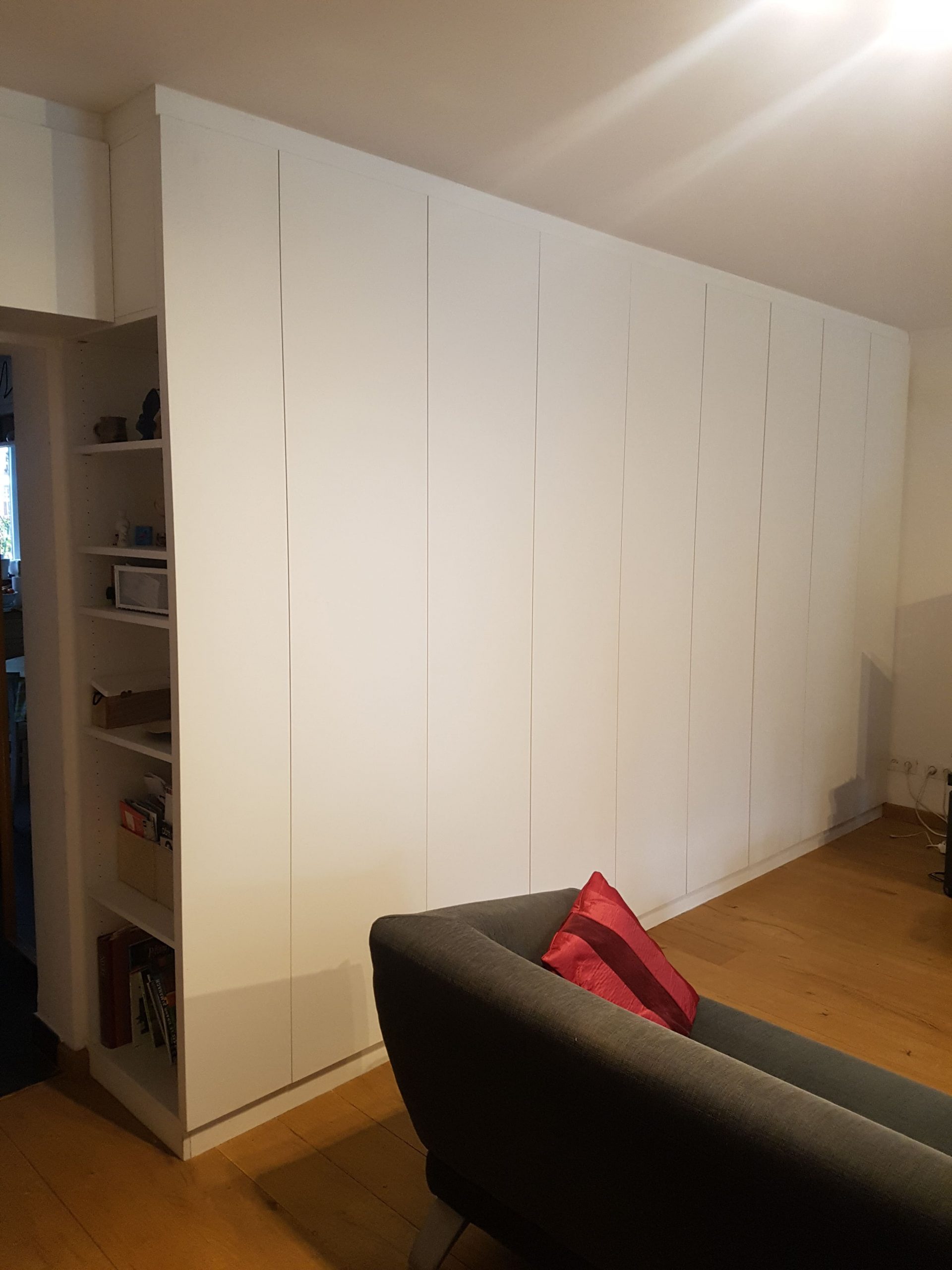 Nous avons conçu un aménagement d’un placard sur mesure dans un salon.