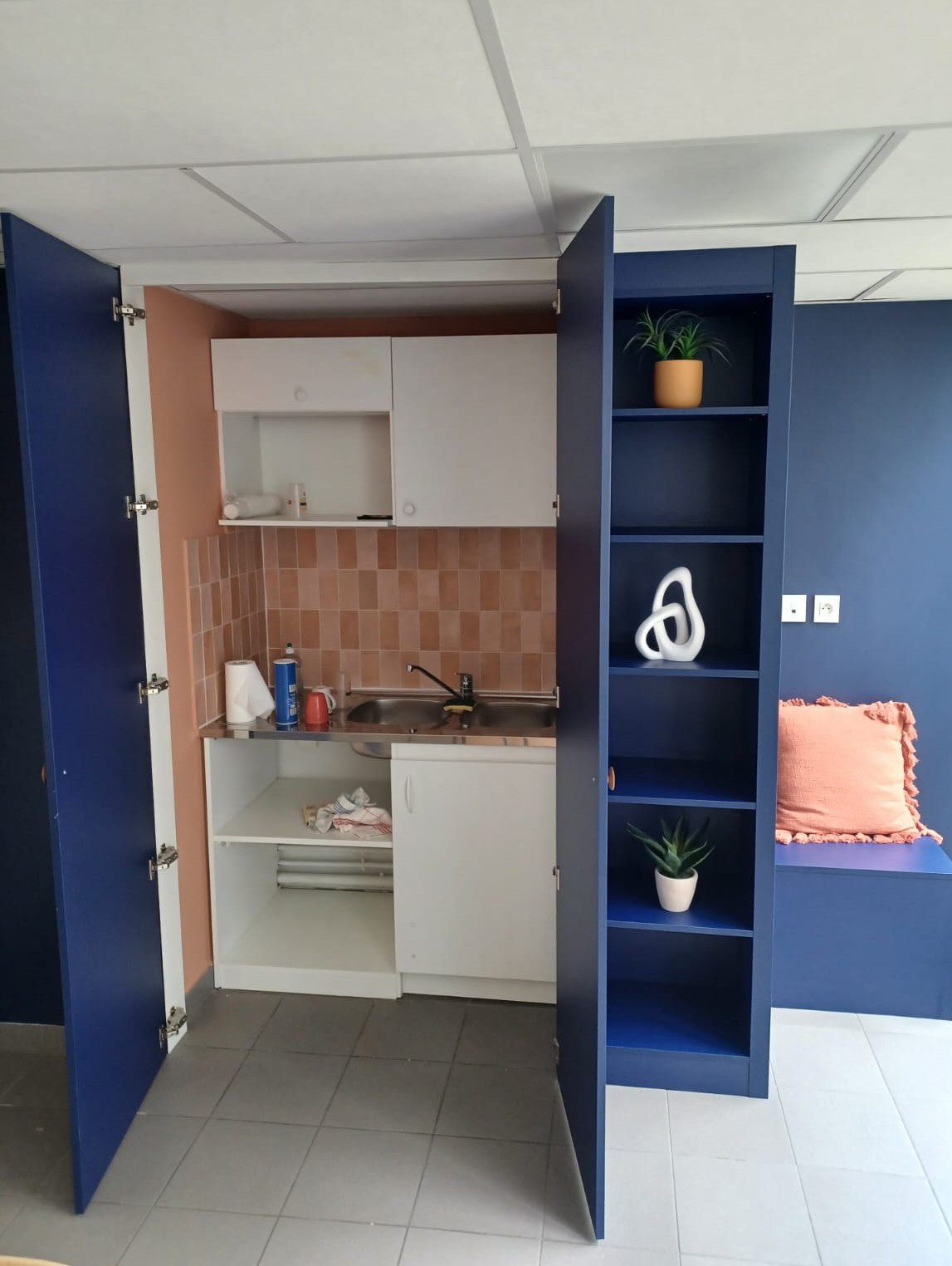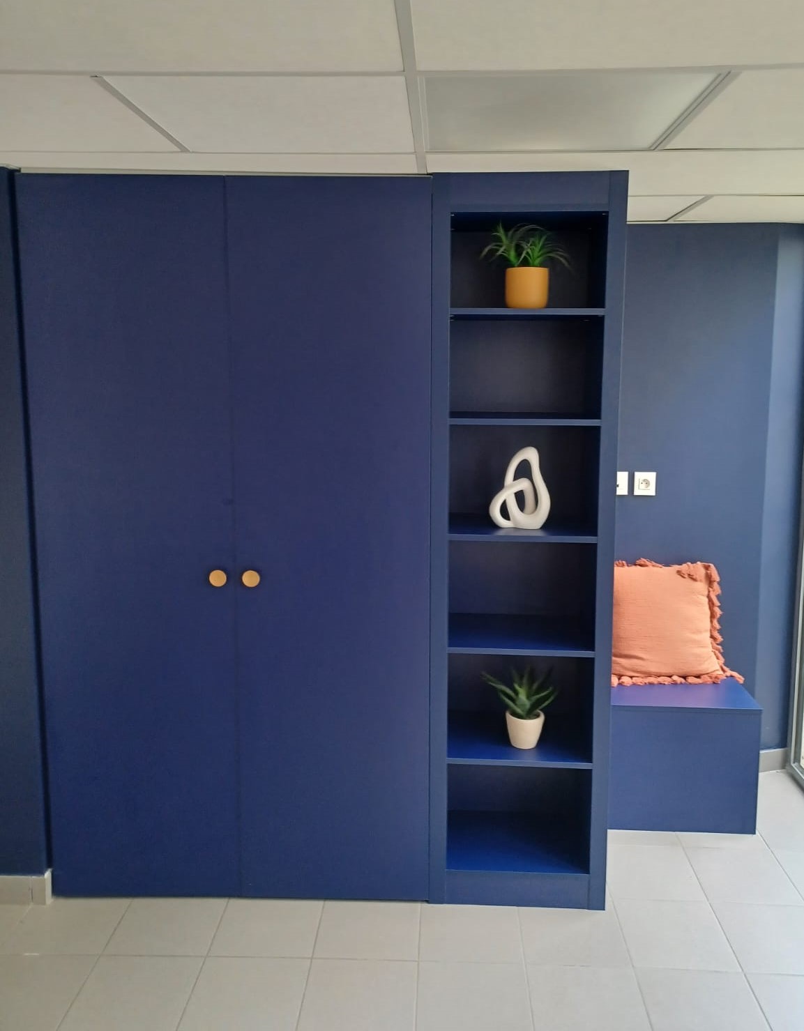Rangements et kitchenette dissimulée pour un local professionnel dans le Nord.