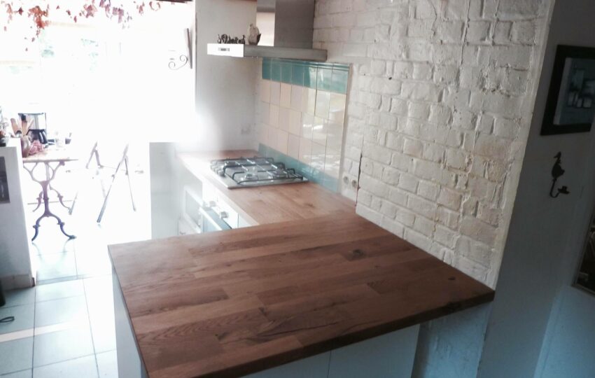 Enfin nous avons fait débordé le plan de travail de ce retour , afin d’y ajouter une partie ‘ petit-déjeuner’.
