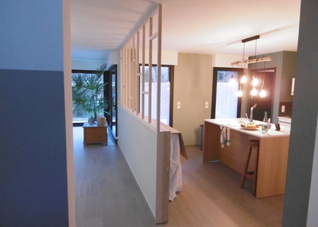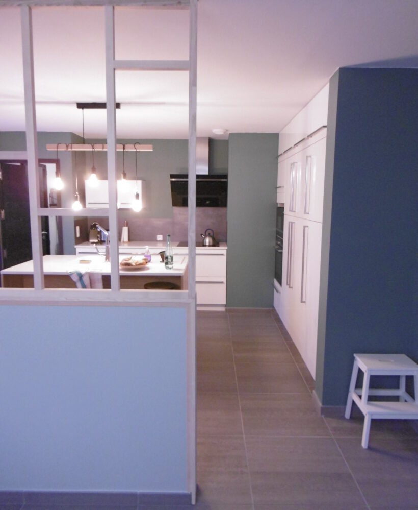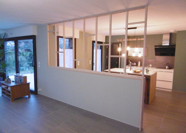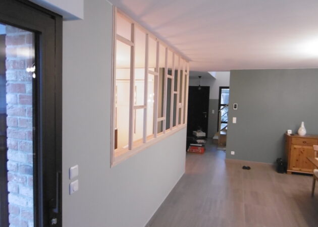 Nous avons réalisé une verrière déstructurée en bois. Besoin de séparer deux pièces de vie tout en conservant la luminosité ?